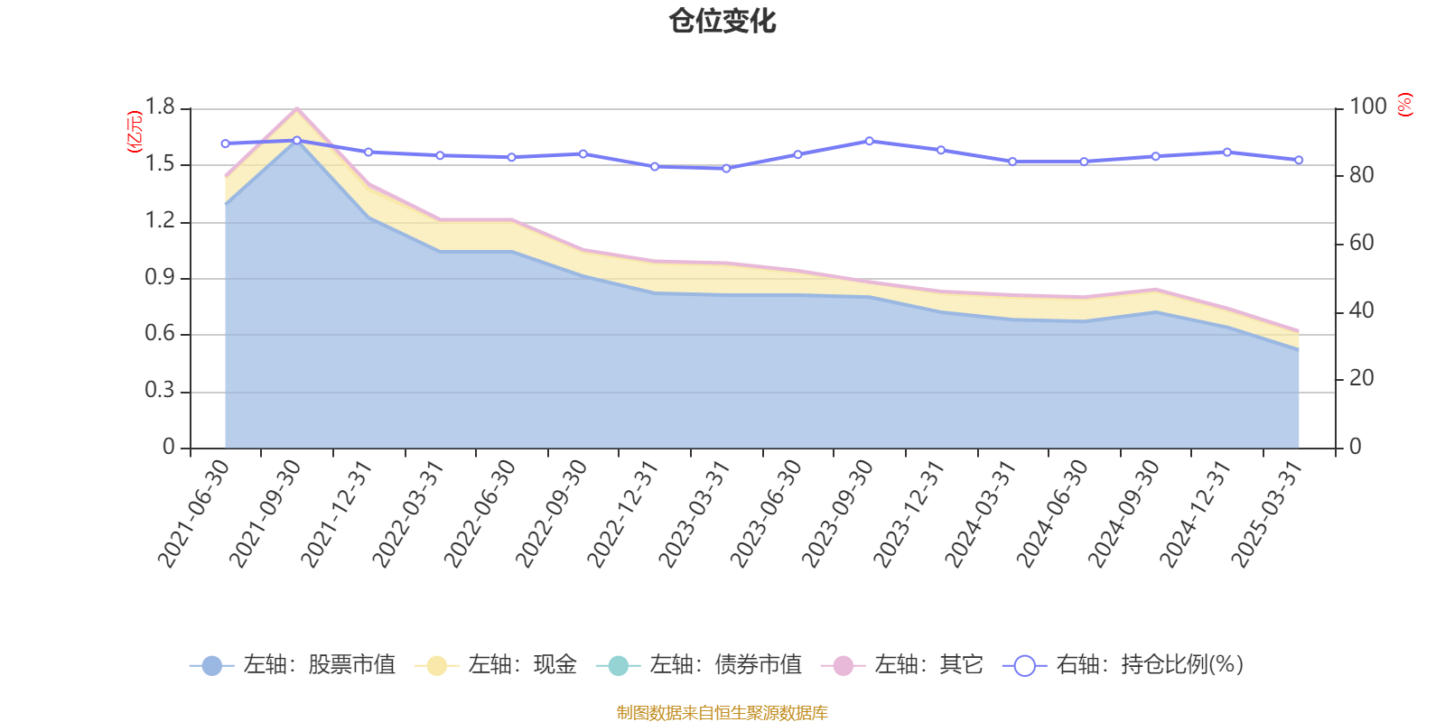 据定期报告数据统计,近三年平均股票仓位为85.68%,同类平均为83.56%。2021年三季度末基金达到90.57%的最高仓位,2023年一季度末最低,为82.3%。