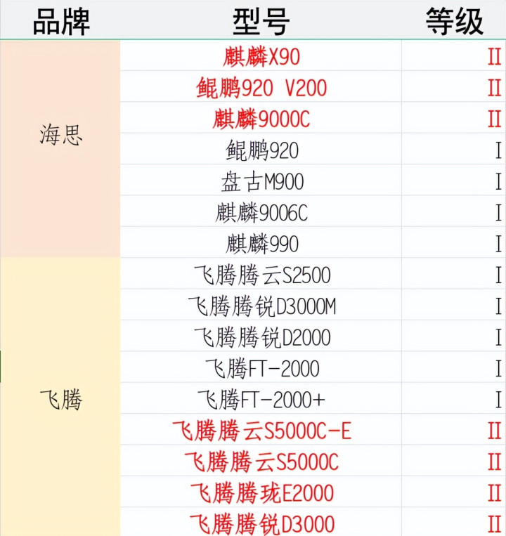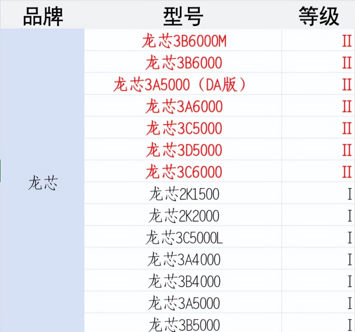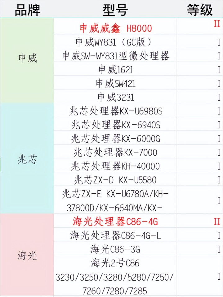 2023年12月以来,共有5家厂商的17款CPU入围II级。